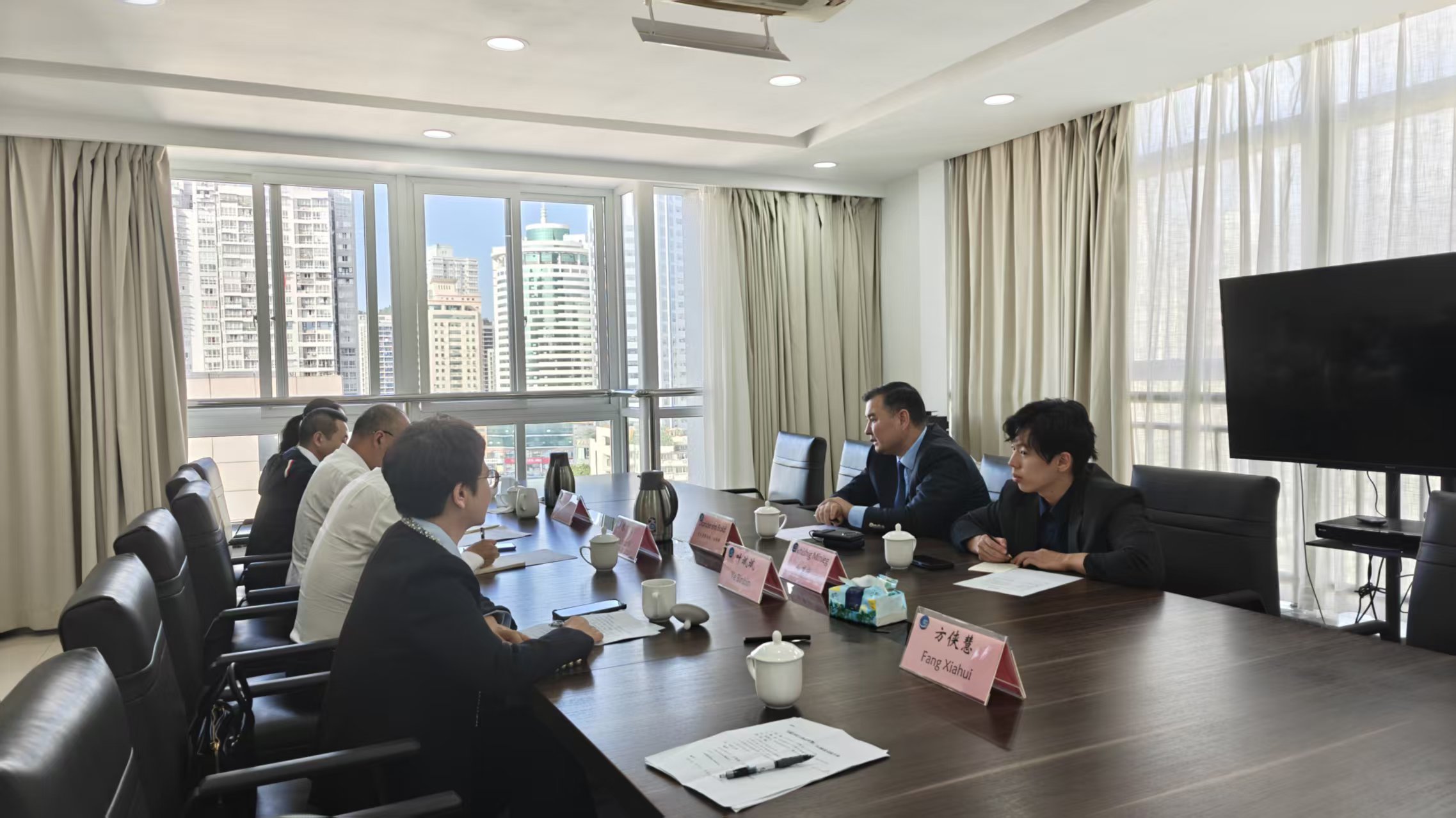 Тэрбээр 10 дугаар сарын 24-ний өдөр Вэньжөү хотын Олон улсын худалдааг дэмжих хорооны дарга Зөн Вэйтэй уулзаж, хоёр улсын орон нутгийн түвшинд худалдаа, хөрөнгө оруулалт, шинжлэх ухаан, инновац болон аялал жуулчлалын салбар дахь хамтын ажиллагааг эрчимжүүлэх талаар санал солилцов. Зэн Вэй дарга Вэньжөү хотын эдийн засгийн өсөлт, экспортын үзүүлэлтийн талаар танилцуулж, ААН-үүд уул уурхай, мал аж ахуй, цахим худалдаа болон аялал жуулчлалын чиглэлээр Монголын зах зээлд нэвтрэх сонирхолтой байдаг талаар онцлов.