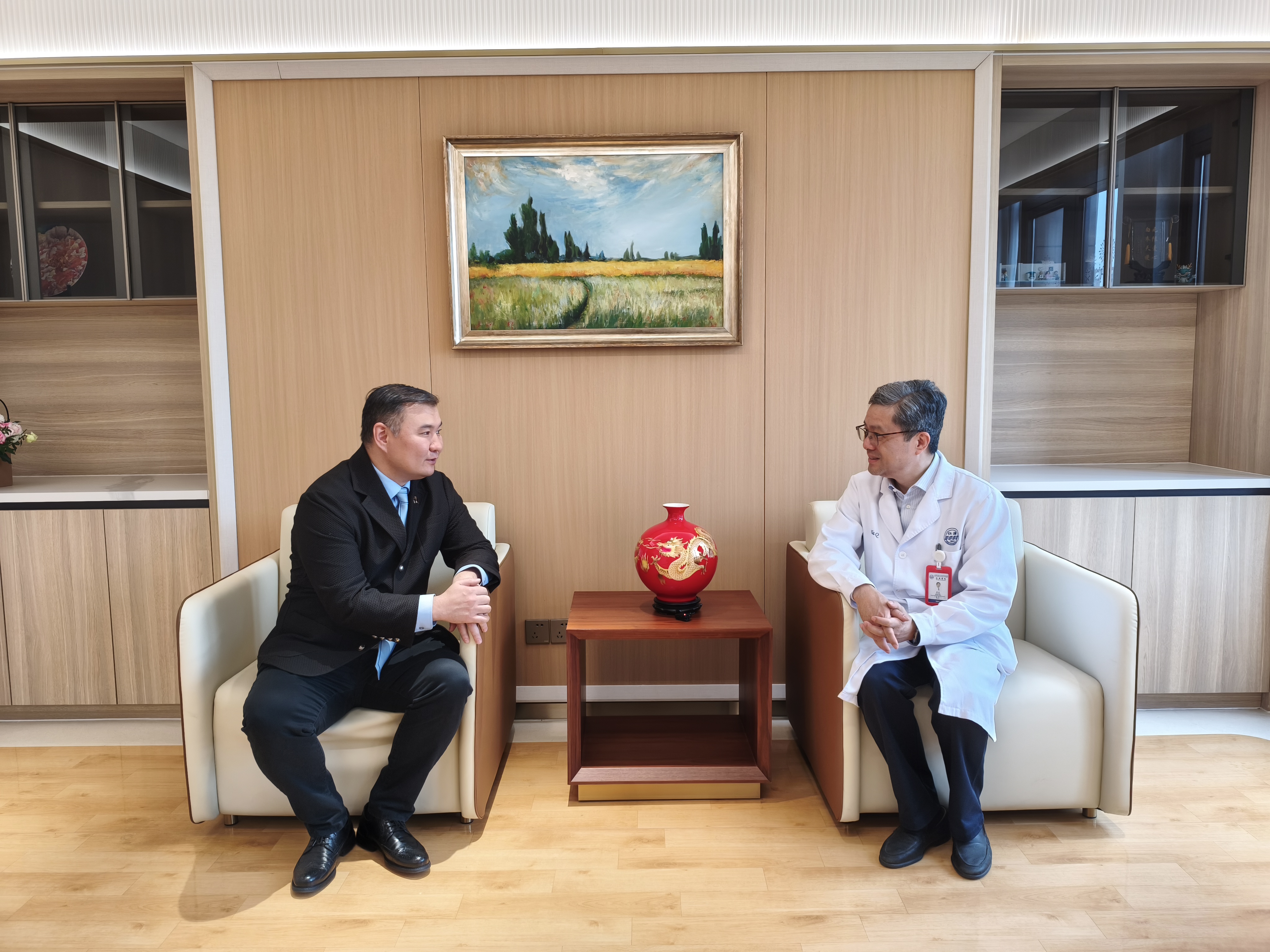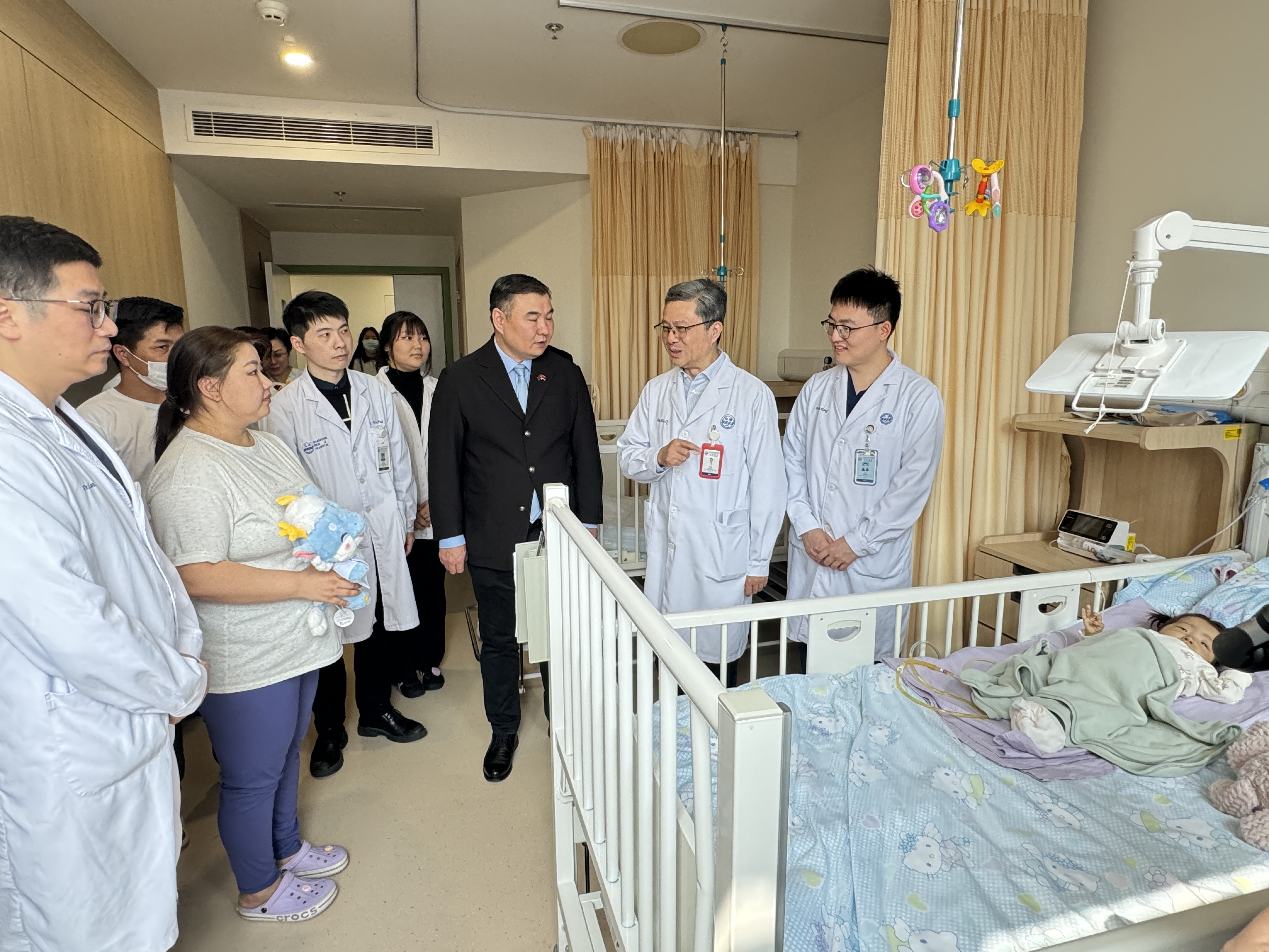 Уулзалтаар өвчтөний биеийн байдлын талаар дэлгэрэнгүй ярилцаж, Рэньжи эмнэлгийн Академич, Ерөнхий эмч Шя Чян хагалгаа амжилттай болсныг онцлон дурдаж, эдгэрэх, тэнхрэх үйл явц хурдан явагдаж буйг танилцуулж, олон улсад маш хүнд хэмээн тооцогддог хагалгааг Монгол Улсын бяцхан иргэнд хоёр дахь удаагаа амжилттай хийсэндээ баяртай байгаагаа илэрхийлэв. Түүнчлэн тэрээр Рэньжи эмнэлгийн хүүхдийн элэг шилжүүлэн суулгах баг нь энэ төрлийн хагалгааг олон удаа амжилттай гүйцэтгэсэн арвин туршлагатай бөгөөд цаашид Монгол Улсаас өөр өвчтөн хүлээн авч, бүх талын эмчилгээ, үйлчилгээ үзүүлэхэд бэлэн гэдгээ мэдэгдэв.