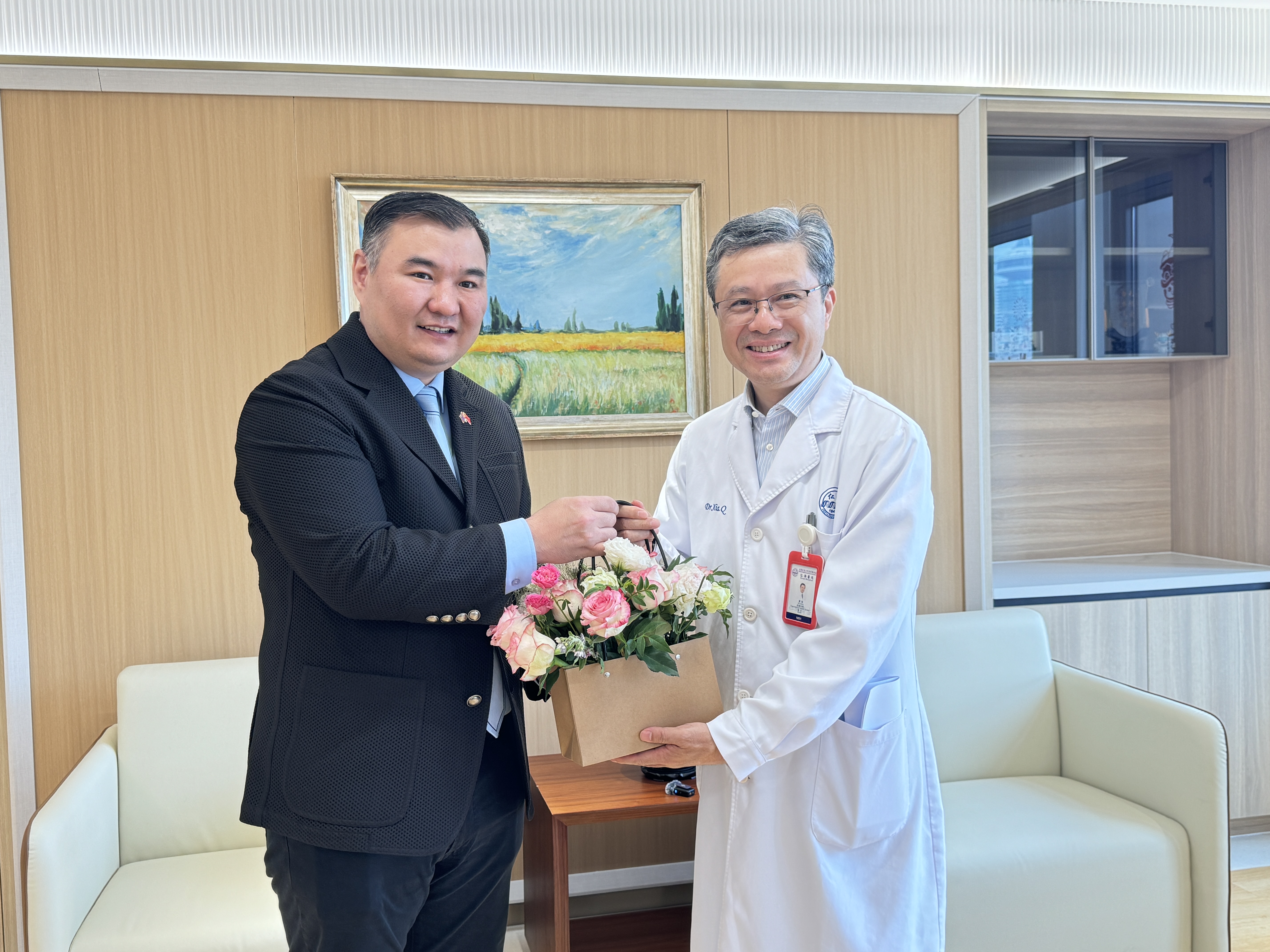 Монгол Улсаас БНХАУ-ын Шанхай хотод суугаа Ерөнхий консул Д.Болд 2026 оны 4 дүгээр сарын 01-ний өдөр БНХАУ-ын шилдэг 13 эмнэлгийн нэг Шанхай хотын тэргүүлэх зэргийн Рэньжи эмнэлэгт хэвтэн эмчлүүлж буй хорвоод мэндлээд 8 сар 5 хоног болж байгаа Монгол Улсын бяцхан иргэн Отгонбаярын Сэцэнгоод элэг шилжүүлэн суулгах мэс заслыг амжилттай гүйцэтгэсэн тус эмнэлгийн захирал бөгөөд Ерөнхий эмч, БНХАУ-ын академич Шя Чян болон түүний баг хамт олонтой уулзаж талархал илэрхийлэв.